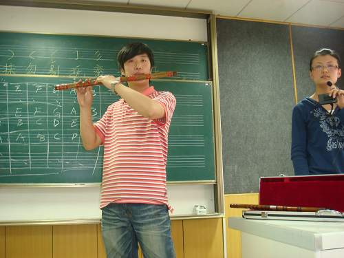 本次交流会由作曲系辅导员刘若骅同志主持。作曲系学生代表李瞳、宋波涛,民乐系学生代表杨晓云分别就各系的课程设置做了详细的介绍,然后民乐系的杨帆等四位同学就二胡、琵琶、古筝、竹笛四种乐器的音域、音色、调式等方面做了充分的讲解,并现场演奏。作曲系学生直观的了解了民族乐器的功能与特点,为以后的创作提供了一个很好的学习机会。作曲系学生从实际创作的角度向民乐系学生进行提问,并以“演奏技巧与创作素材哪个方面更能充分展示乐曲的表现力”为话题展开了激烈的讨论,双方的激烈讨论形成了此次交流会浓厚的学习氛围。最后在民乐系辅导员闫棚春同志的总结中,交流会圆满结束。
