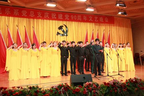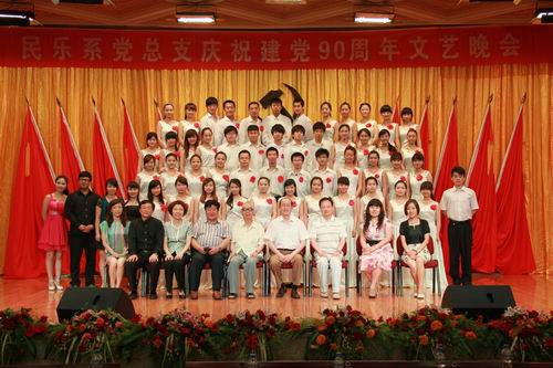 整场晚会在全系师生《没有共产党就没有新中国的》激昂的歌声中拉下帷幕。精彩的演出得到我系广大教职工、党员、学生家长、以及兄弟院校老师们的一致好评;外国友人科林在观看整场晚会后,真诚的表达自己的心声:“祝愿民乐系越来越好”。