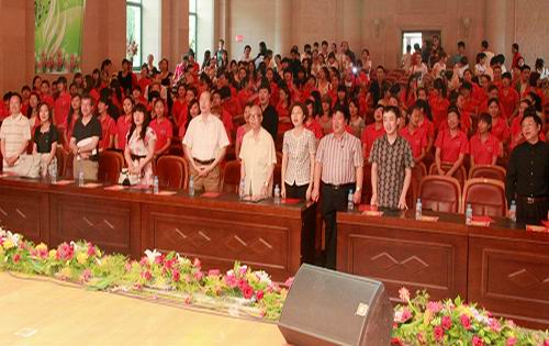 (系学生会学生党员代表庄严宣誓,并演唱歌曲《没有共产党就没有新中国》)