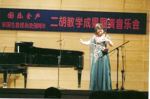 除研讨会外,大会向代表们展示了两场高质量、高水平的音乐会,即“国乐金声”——宋国生教授二胡教学成果展演,宋国生教授民族器乐、声乐作品教学成果展演。音乐会上,宋国生先生充满激情的独奏、领奏以及他女儿宋飞超高水平的二胡、板胡演奏,把整个会议推向高潮,在场观众无不为之雀跃、震撼、激动,雷鸣般的掌声经久不息,让人无法忘怀。这两场音乐会不仅充分展示了天津音乐学院很强的教学实力,同时也充分展示了该院各级领导高质量的管理水平,台上台下师生齐心协力、密切配合、一丝不苟、严谨大方的舞台风度,给人留下十分深刻的印象……