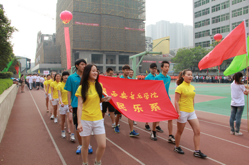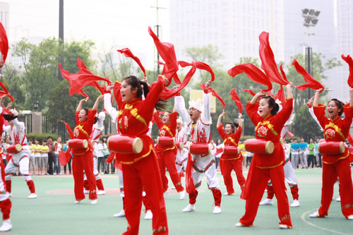 党委书记安宁和院领导们参加了开幕式,党委副书记、常务副院长孙卫国宣布运动会开幕,纪委书记王平致开幕词。伴随着雄壮的军乐,各方阵队都以精神抖擞的面貌走过主席台,表现出他们对这次运动会取得良好成绩的坚定决心。在开场表演中,各系都拿出了他们的精彩节目,我系同学为全场观众带来的安塞腰鼓表演更是将气氛推向高潮,当他们身穿具有浓郁陕北特色的喜庆服饰,接连做着各种整齐而又高难度的动作,喊着一声比一声嘹亮的口号时,赢得了现场所有人的掌声和好评。为了这个节目,在党总支书记张津波、辅导员熊芙萱、闫棚春、赵静的组织带领下,在近十天的训练中同学们头顶烈日、精神抖擞、每天练习都在三、四个小时以上,没有一个人叫苦叫累。他们的展示表现了当代大学生的活力与风采,又用表演的方式诠释了“团结进取,开拓创新”的运动会理念。