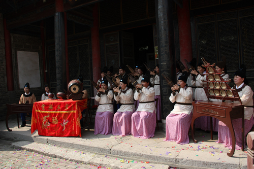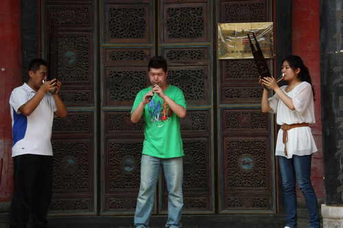 “春风送爽千山翠,瑞气迎临万象新”。在这春满人间、百花争艳的美好时节,民乐系师生于2012年5月8日下午,在长安区何家营村鼓乐社 举行西安音乐学院“民乐系教学实习基地”挂牌仪式活动。系主任程天健、书记张津波以及系委会成员和部分研究生、本科生参加此次活动。