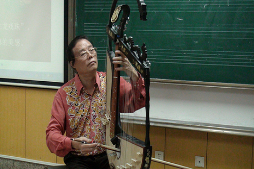 文正球先生是著名的音乐家,中国音乐世界文琴学会主席,同时也是文琴的发明者。这次来我系,文正球先生就给我系师生介绍展示了他研制的文琴。