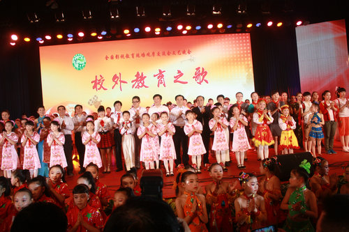 多年来,在陕西省教育厅的领导和关心下,在院领导的大力支持下,我院校外教育工作成绩突出,此次作为大学生校外辅导员代表参加了本场演出。民乐系表演了情景古筝合奏《百花引》,舞蹈系表演了舞蹈《走在乡间的音符》,由省委教育工委、省教育厅巡视员吕明凯作词、我院副院长韩兰魁作曲的合唱《校外教育之歌》将晚会推向了高潮,音乐教育系50名同学参与了合唱方队。