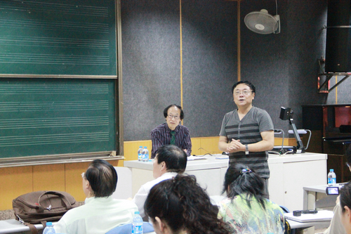 九月二十一日晚,香港朱道忠博士应邀到民乐系举办讲座。参加讲座的有民乐系主任程天健、副主任呼延梅文,陕西省民管会会长鲁日融、副会长关铭,弓弦教研室老师及民乐系同学。当晚的讲座题为《漫步于美景棲居于诗意》——二胡美学漫谈,弓弦教研室主任金伟主持了讲座。