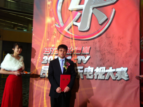 2012年11月9日晚,“汾酒杯2012CCTV民族器乐电视大赛”举办了隆重的颁奖晚会。我院院长赵季平应邀出席,并作为嘉宾为获得一等奖的选手颁发获奖证书。我院民乐系副主任高晓鹏副教授连续三届担任大赛评委。