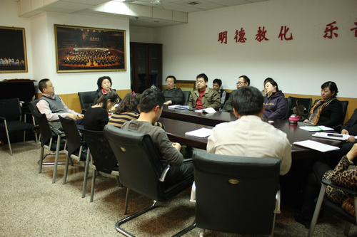 2012年12月6日下午,民乐系党总支教工党支部在14楼会议室举行了党的十八大精神宣讲及党员纳新会议。民乐系党总支书记张津波以及赵鸿宾、任畅、雷华等党员教师参加了会议。 张书记首先介绍了十八大召开的盛况,传达了十八大重要精神和学院党委的有关要求,希望党员教师结合本职工作认真学习领会,并落实到实际行动当中。