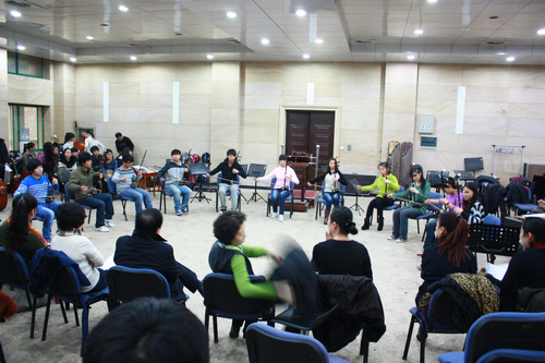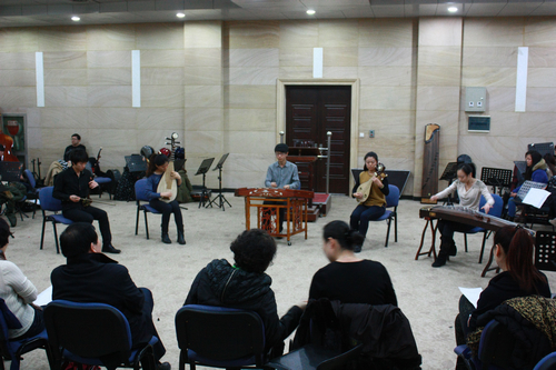 当天的汇报首先由雷华介绍了合奏课的开设情况以及本学期的工作,之后,六组合奏课的同学分别进行了丝弦五重奏、阮族合奏、弦乐合奏、弹拨乐合奏、吹打乐合奏汇报。同学们认真的态度和优异的演奏得到了在场老师的肯定和好评。最后程天健教授作了总结发言。