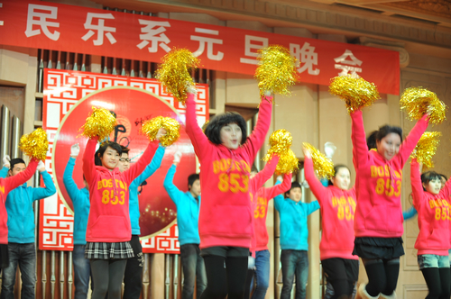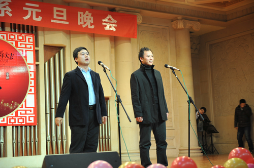 青年教师们表演的藏族舞蹈《我祝祖国三杯酒》演绎出了我系青年教师的青春气息,高纯华老师深情演唱成为晚会的又一亮点。由张津波、程天健、呼延梅文三位老师带领全体教师热情演绎的《大秧歌》博得全场师生连声喝彩为晚会画上了圆满的句号。两个多小时的演出,让大家意犹未尽。激情的演员、热情的观众将会场的气氛一次次的推向高潮,那透彻心底的欢腾喜悦感染着每位嘉宾和观众,送走了硕果累累的2012,新年的钟声即将敲响,让我们迎着冬日里温暖的阳光,满怀着喜悦的心情,一起迎接充满希望的2013年。