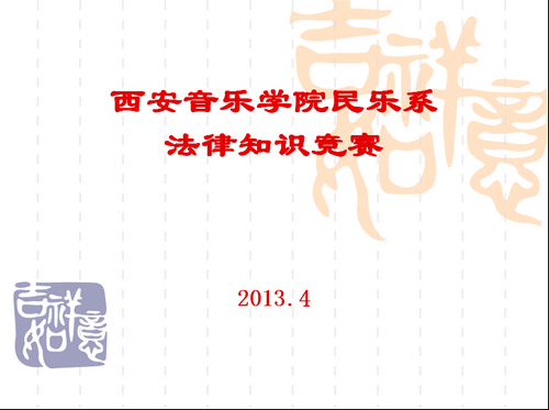 2013年4月17日下午14:00时,为提高《思想道德修养与法律基础》课中法律部分学习成效,民乐系组织2012级学生在五号教学楼举行了“学习法律知识·护航美丽人生”的法律知识竞赛,经过激烈的竞赛,共评选出十五名获奖同学。张津波书记和熊芙萱、张志强老师组织和指导我们,所有的比赛程序全部由同学们自己实施,锻炼了大家组织活动的综合能力。