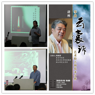 5月17日晚,周煜国副教授做客扬州大学艺术学院,举办了“筝曲《云裳诉》艺术特点和技法分析”学术讲座。本次活动由扬州大学艺术学院主办,琼花古筝协办,中国古筝网媒体支持。扬州大学艺术学院院长张美林教授主持了本场讲座,艺术学院古筝专业王小平副教授、傅明鉴教授和学院师生及当地古筝爱好者出席并聆赏了讲座。