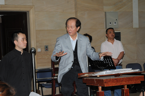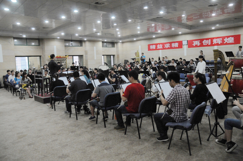 5月25日下午,院长赵季平、副院长王真与民乐系、艺术实践处的领导同志一同审查了民族管弦乐团排练情况。乐团将于6月13日、14日赴香港举办两场音乐会,日前,排练正紧锣密鼓的进行。