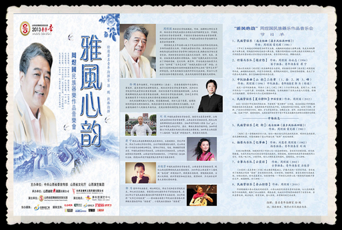 音乐会上呈演的四首民族管弦乐合奏和四首民族器乐协奏类作品,均为作者不同时期的代表之作,在山西省境内均为首演,其中《夏日骄阳》为国内首演。