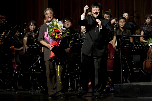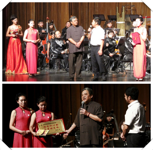 音乐会前,山西省歌舞剧院院长成团升先生为周煜国副教授颁发了“山西省歌舞剧院民族乐团艺术顾问”的荣誉证书,周煜国副教授回赠亲笔题词的“雅风和心韵 秦晋结良缘”匾牌和纪念品,并在现场发表了热情洋溢的音乐会感言。