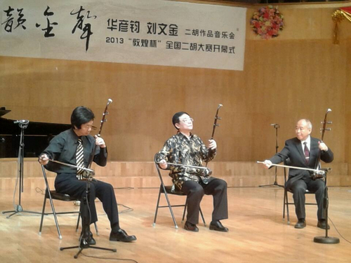 2013全国第二届“敦煌杯”二胡大赛8月21日在北京中国音乐学院举行,金伟教授应邀担任此次大赛评委。20日应邀在中国音乐学院参加了“在音乐中永生”——刘文金先生二胡创作研讨暨追思会。并于当晚在中国音乐学院国音堂参加了“华韵金声”华彦钧刘文金二胡作品音乐会的演出。