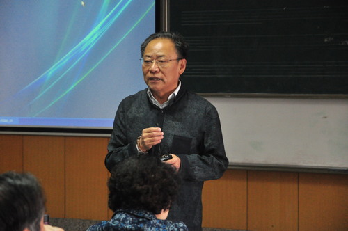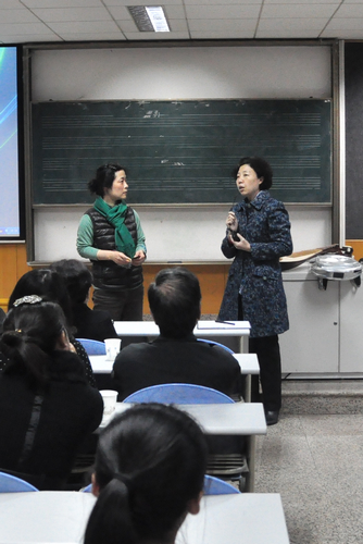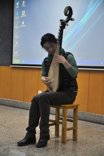2013年11月5日下午四点在五号教学楼815教室,民乐系与西北民族音乐研究中心共同邀请旅美琵琶艺术家吴蛮女士《当代音乐家的角色》讲座,特聘专家乔建中教授主持。我系党总支书记张津波、樊艺凤副主任、民研中心副主任李村、鲁日融教授、张棣华教授、琵琶教师赵静、倪慧娣、宋薇等老师及学生参加讲座观摩学习。
