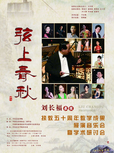 由中央音乐学院主办的“弦上春秋——刘长福教授执教50周年教学成果展演音乐会暨学术研讨会”于2013年11月16、17日在中央音乐学院举行。我院民乐系金伟教授作为特邀嘉宾参加了此次活动并在研讨会上宣读论文《二胡地域风格性作品在新时期的意义与发展探索》。
