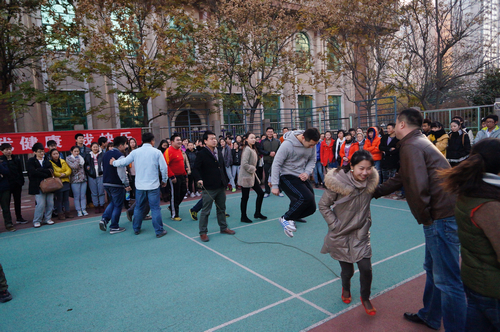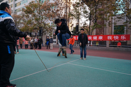 为广泛开展我系课外体育活动,培养学生团结、拼搏精神。2013年11月29日下午民乐系在操场举办了“西安音乐学院民乐系师生跳大绳友谊赛”。莅临现场的有民乐系党总支书记张津波、主持工作的呼延梅文副主任、系工会主席任畅、弓弦乐教研室主任金伟、吹打乐教研室主任杨会青、民乐团团长赵鸿宾等。