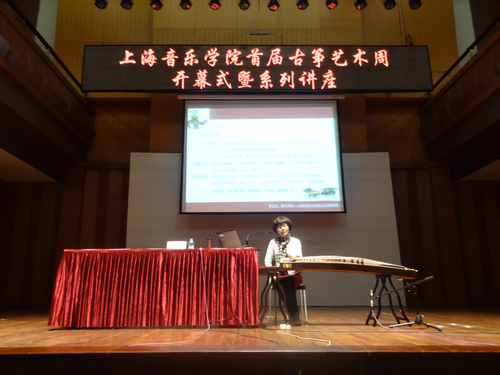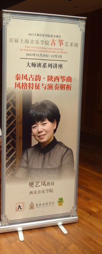 此次活动邀请全国著名古筝演奏家、教育家、理论家、作曲家与全国各地的古筝教师们在上海齐聚一堂,应邀参加此次大师班讲座授课的专家、教授有我院樊艺凤、乔建中、周煜国,上海音乐学院孙文研、何占豪、萧梅、金建民,中央音乐学院李萌,安徽师范大学音乐学院李庆丰。樊艺凤讲座题目为《秦风古韵•陕西筝曲风格特征及演奏解析》,就陕西筝派的发展过程、风格特征、演奏解析等方面为大家进行讲述。最后,通过周延甲先生的一首代表作,具体讲解了如何演奏陕西筝曲。生动的讲解、细腻的演奏给大家留下了深刻的印象,不少观众听完讲座纷纷表示收获满满,更希望有机会再当面求教。