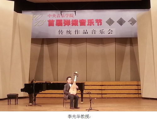 由中央音乐学院主办的“首届弹拨音乐节”于2013年12月1日至12月6日在中央音乐学院举行。我院民乐系任畅副教授应邀,带领研究生左霂婧俍、石洋、王芳前去参加。此次弹拨音乐节主要探讨和展示我国竖抱类弹拨乐器(琵琶、三弦、阮、柳琴)的发展及学术成果。活动的主要内容为:1.以来自全国各地,包括港澳台地区的弹拨音乐代表人物、表演者与“对话嘉宾”(专家,教授)共同举行的10场不同内容与风貌的讲座音乐会;2.举办了三场主题鲜明的音乐会,分别为:由中央音乐学院民乐系青年教师兰维薇、吴琼、赵洁、江洋等演绎的当代作品音乐会;由章红艳、张强、郝贻凡等一批活跃于当今音乐舞台的民乐领军人物奉献的传统作品音乐会;由中国广播民族乐团弹拨乐声部,中国音乐学院附中弹拨乐团,中央音乐学院弹拨乐团联合演出的闭幕式庆典音乐会。