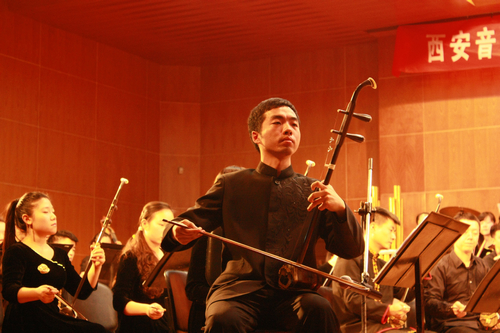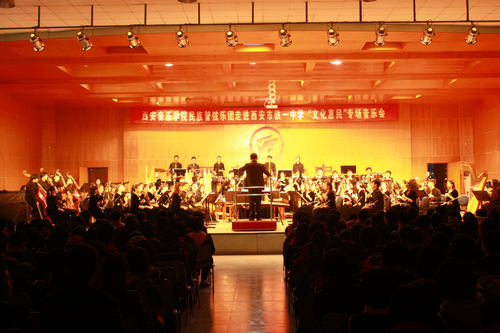 2013年12月6日下午五时,西安音乐学院民乐系党总支书记张津波、副主任高晓鹏及民族管弦乐团团长赵鸿宾率领全团近百名师生到西安铁一中举行“西安音乐学院民乐系艺术实践教学基地挂牌”及“文化惠民”演出活动。此次活动,得到了铁一中的副校长姜书念及艺术中心主任罗绮大力支持。