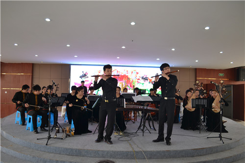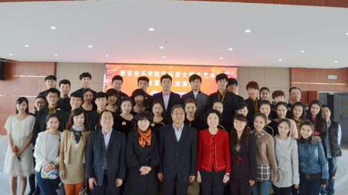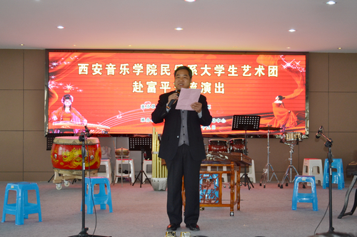 民乐系大学生艺术团是从各年级抽出专业优秀的学生,邀请部分教师针对曲目进行专门排练辅导。在近两个月的精心准备和辛苦排练下,为富平县的音乐教师、青少年学生和家长们精心准备了一台既具有陕西地方特色又极富时代气息的节目。演出形式丰富多彩,包含了独奏、独唱、重奏、合奏和乐队协奏等,有丝弦五重奏《映山红》、二胡独奏《秦腔主题随想曲》、女声独唱《梅花引》、古筝重奏《蝴蝶泉边》、琵琶重奏《送你一支玫瑰花》、管子协奏《龟兹舞》等。观众们对艺术团师生的精彩演出不时报以热烈的掌声。最后,在郭琴星老师的指挥下,民乐系大学生艺术团民族小乐队为热情的观众们加演了《花好月圆》和《赛马》,整场演出得到了到场观看领导和观众们的高度评价,富平县电视台进行了报道。