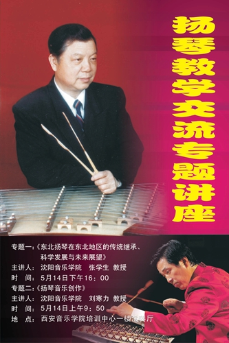 5月14日,应民乐系弹拨教研室邀请,沈阳音乐学院扬琴教授张学生和刘寒力教授,在我院培训中心演奏厅,举办《扬琴教学交流专题讲座》。