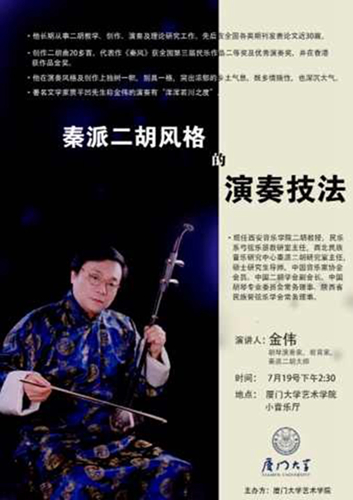 一、金伟应邀在厦门艺术学院举办二胡讲座