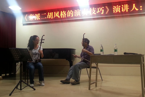 我院民乐系教授金伟应厦门大学艺术学院之邀,于2014年7月19日在厦门大学艺术学院音乐厅举办二胡专题讲座及教学公开课:“‘秦派二胡’风格的演奏技法”。厦门大学艺术学院、厦门艺术学校的师生及演艺团体的同行们聆听了讲座,观摩了公开教学课。