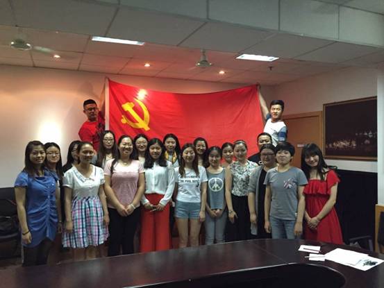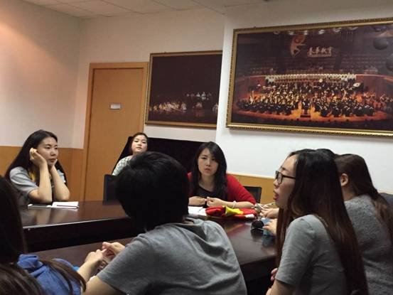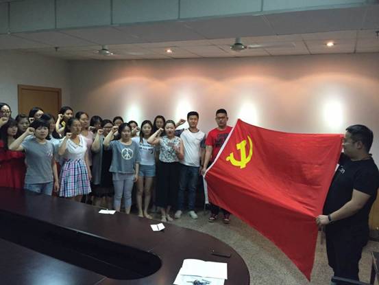 2015年5月26日下午,民乐系学生第一党支部在五号教学楼14楼会议室举行了11级毕业班党员宣誓活动。在宣誓开始前,张书记首先传达了学院党委的有关要求,强调了毕业生的有序毕业与安全离校工作,希望毕业班党员发挥模范带头作用。赵静老师详细说明了"文明宿舍"评比和毕业工作各项安排。宣誓仪式上,赵静老师带领11级全体党员在党旗下庄严宣誓,毕业班党员通过宣誓和重温入党誓词,进一步增强了作为一名党员的光荣感,责任感和使命感。毕业生党员在党旗下合影,留下这美好而庄严的时刻。