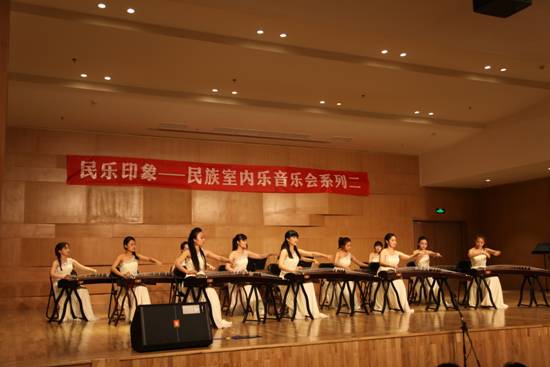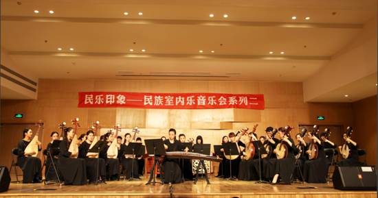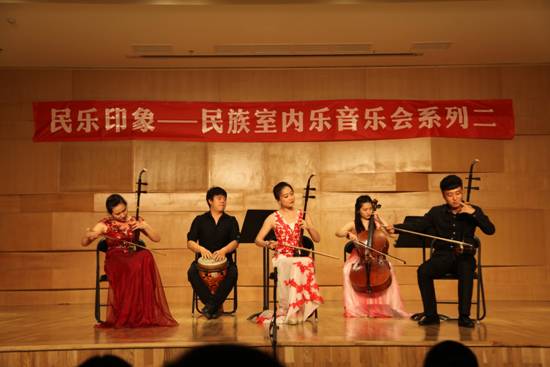 2015年5月27日晚 “民乐印象-----民族室内乐音乐会系列之二”在我院艺术中心成功举办。院党委书记李映芳、副院长韩兰魁亲临现场指导,出席本场音乐会的有关铭、鲁日融、刘达章、呼延梅文、张津波、任畅、王丽懿、任意等教授。民乐系室内乐教研室主任雷华老师精心策划了八首音乐会作品,全方位展示了民乐系各专业小型、中型与大型组合表演形式。艺术实践处处长刘宝玲老师担任本次音乐会主持。