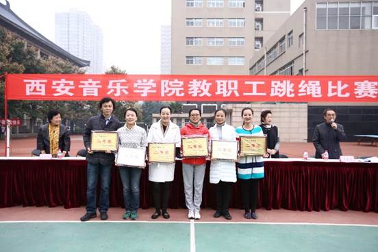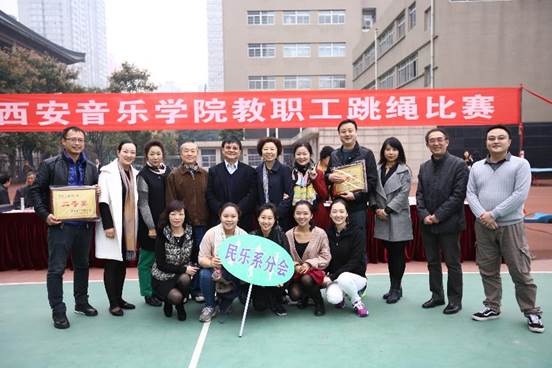 2015年11月4、5日,西安音乐学院工会举办了第三届“西安音乐学院教职工跳绳比赛”活动。民乐系代表队二十余人在张津波书记带队下参加了大、小绳各项比赛,呼延梅文副主任(主持工作)亲自上阵参加大绳比赛,并取得二等奖的好成绩。