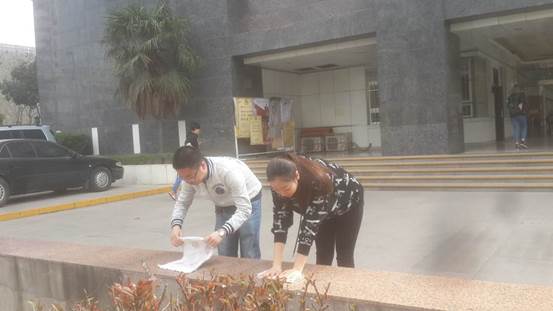 为保证此次活动的有序进行,各成员准时带好抹布、扫把等工具在五号教学楼前集合。在详细的分工后大家便投入到了紧张的劳动当中。同学们不怕脏,不怕累,积极主动的清扫着每个角落的灰尘,在同学们热心参与和合作无间下,活动得以顺利并且提前完成,被清洁过的地方光彩鉴人。活动过后,大家在美丽的樱花树下照相留念,各自散去,留下了的只是雷锋的精神。