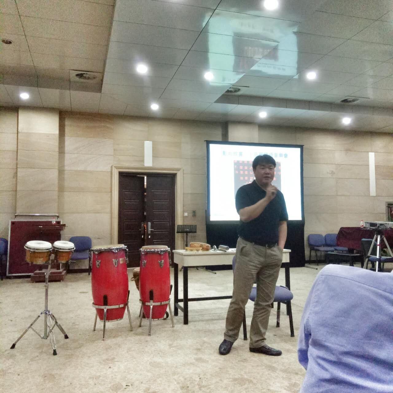 2016年5月9日晚,台湾朱宗庆打击乐团何鸿棋副团长应邀于西安音乐学院学术厅三楼西排练厅举办“鼓动生命的打击乐”讲座。讲座期间他与师生们分享了他戏剧般的生命经验,并带来了各式各样有趣的乐器进行介绍和示范,让广大师生体验到了打击乐器演奏的乐趣。出席此次讲座的老师有吹打教研室主任杨会青副教授、赵洪斌副教授、徐浪潮教授、王小庆教授等。