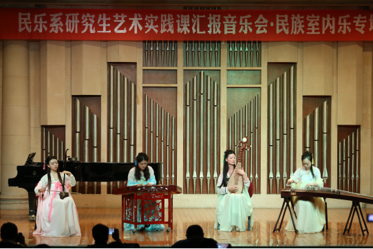民乐系研究生艺术实践课,是我院研究生部特别开设的一门舞台实践课程。牛苗苗副教授作为本课程的授课老师,坚持“艺术实践是第二课堂”这一理念,亲自策划并排演了本场音乐会。在此过程中,既锻炼了同学之间的合作意识,也增强了演奏者的舞台实践经验,并通过发现自身的问题从而不断进步。音乐会的举办正是秉承了弘扬中国传统民乐之精髓,同时提升了民乐系学生艺术实践的综合能力,发挥了民乐系在我院教学实践和艺术实践方面的重要作用,为研究生们的舞台实践积累了丰富的经验。