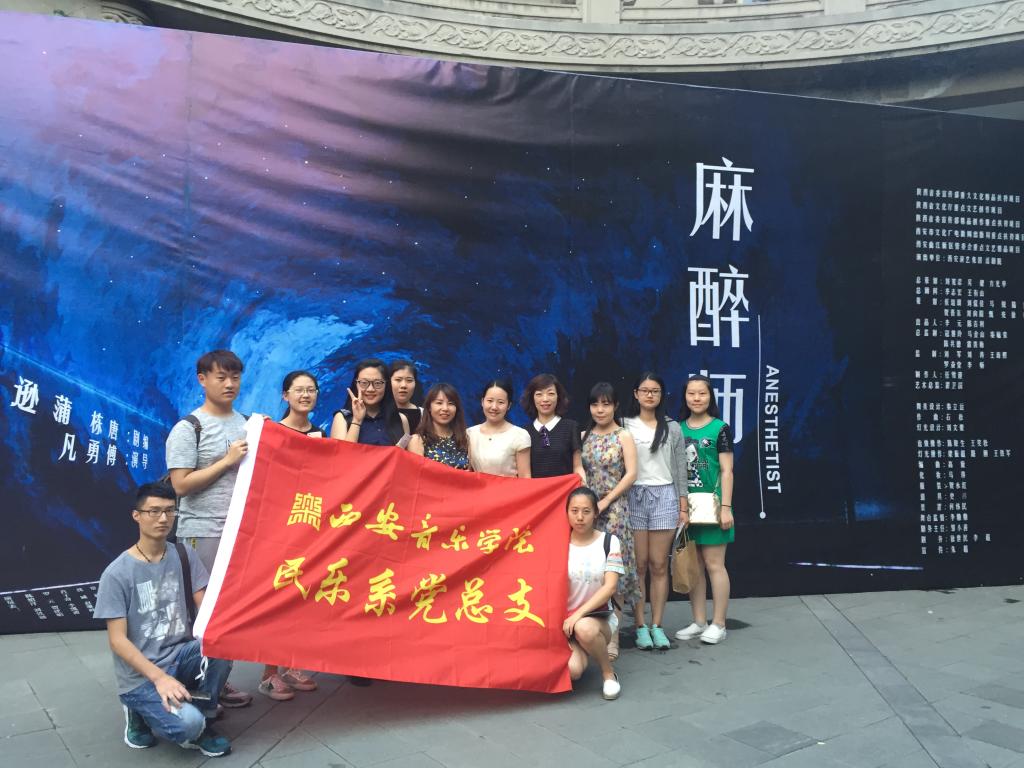 2016年6月30日,由中共陕西省委宣传部、陕西省文化厅、西安市文广新局主办,西安话剧院排演的话剧《麻醉师》在人民大厦剧院上演。民乐系党总支组织党员师生观看话剧,开展“两学一做”学习教育现场特色学习。