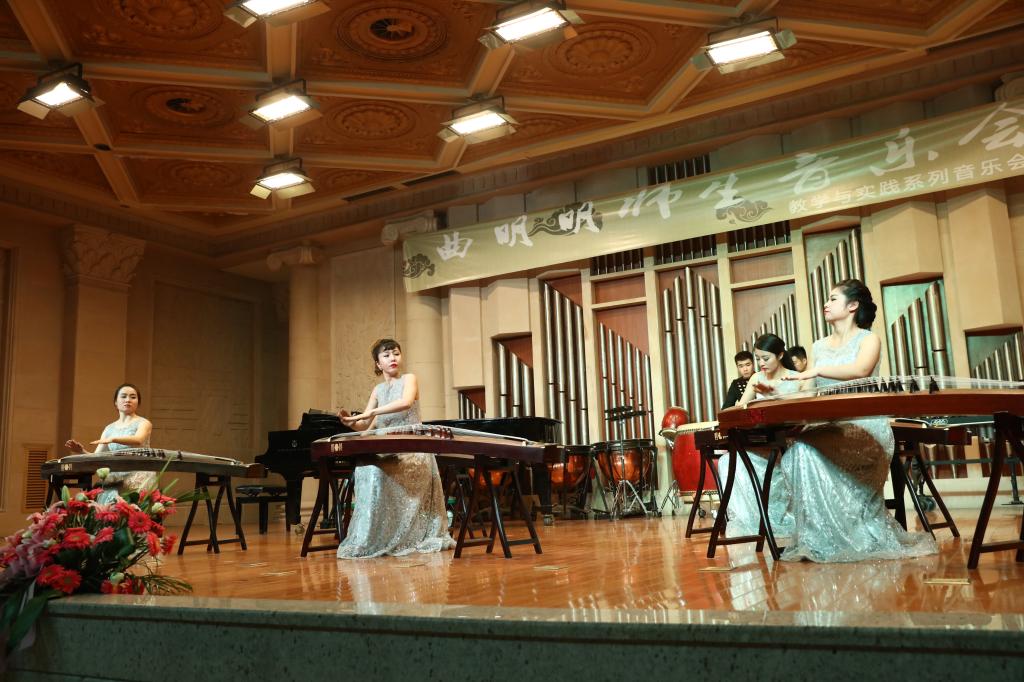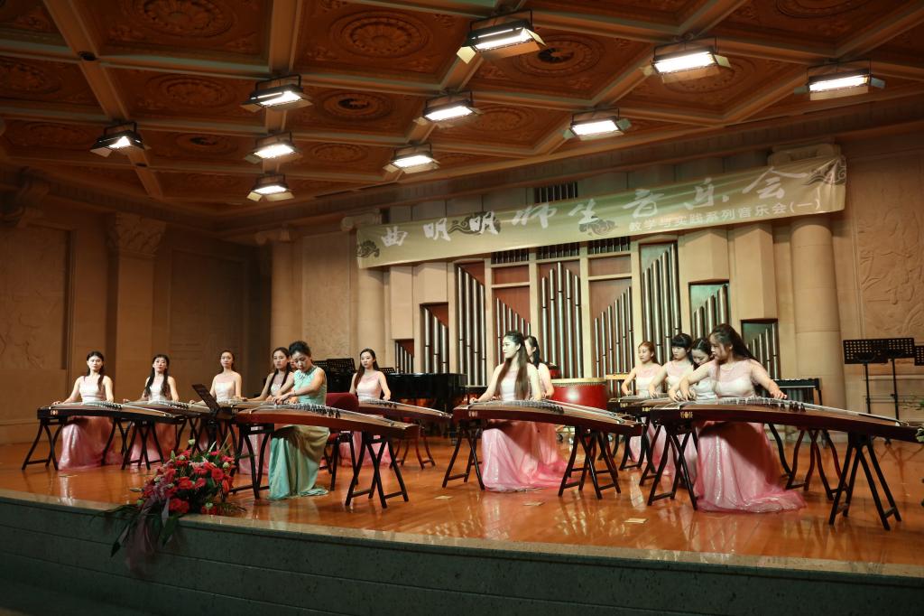 音乐会在筝齐奏和吹打乐《悦》的热闹声中结束,全场气氛高昂,音乐会取得圆满成功。“莫听西秦奏,筝筝有剩哀。”音乐会虽已结束,但这些筝乐带来的不仅是一场视听盛宴,更彰显了曲明明老师及其众多学生对待古筝艺术的严谨态度。相信在日后,她们将以更真挚和美好的筝声来回报这片孕育了无数音乐学子的音乐圣地!
