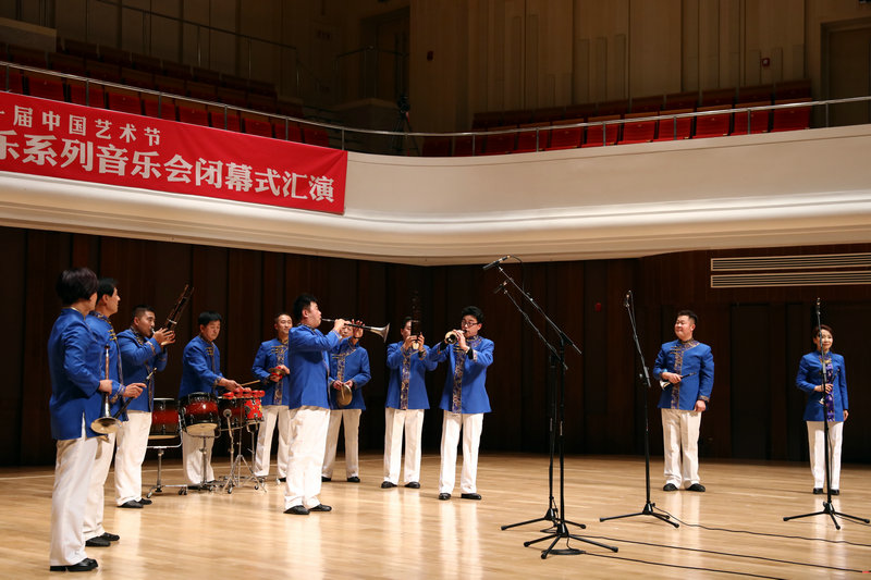 “2016中国民族器乐系列音乐会”展演活动汇聚了多位国家级非物质文化遗产传承人,呈现了中国东南西北各具特色和代表性的地方乐种。系列音乐会不仅汇聚了辽宁复州鼓乐、陕北大唢呐、晋北鼓吹、安徽周家班、山东菏泽丝弦组合,还包括广州星海音乐创作协会“粤成荟”广东音乐小组、上海国乐研究会、新疆艺术剧院民族乐团、内蒙古艺术学院潮尔民族乐团及西安音乐学院青年鼓乐团、中央音乐学院“龙之吟”笛埙乐团等,11个代表性队伍即有民间乐团、乐社,又有专业团体及专业院校。10月26—28日,学院学术厅连续三天每天下午分别进行各团队的展演,各队各显神通,充分的利用表演时间来展示其乐种的经典曲目和绝活,为观众献上一场场风格各异、特色鲜明的音乐盛会。