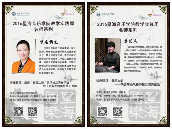 11月22日-23日,我系主任呼延梅文教授、副主任樊艺凤教授应邀赴星海音乐学院参加艺术实践周活动。