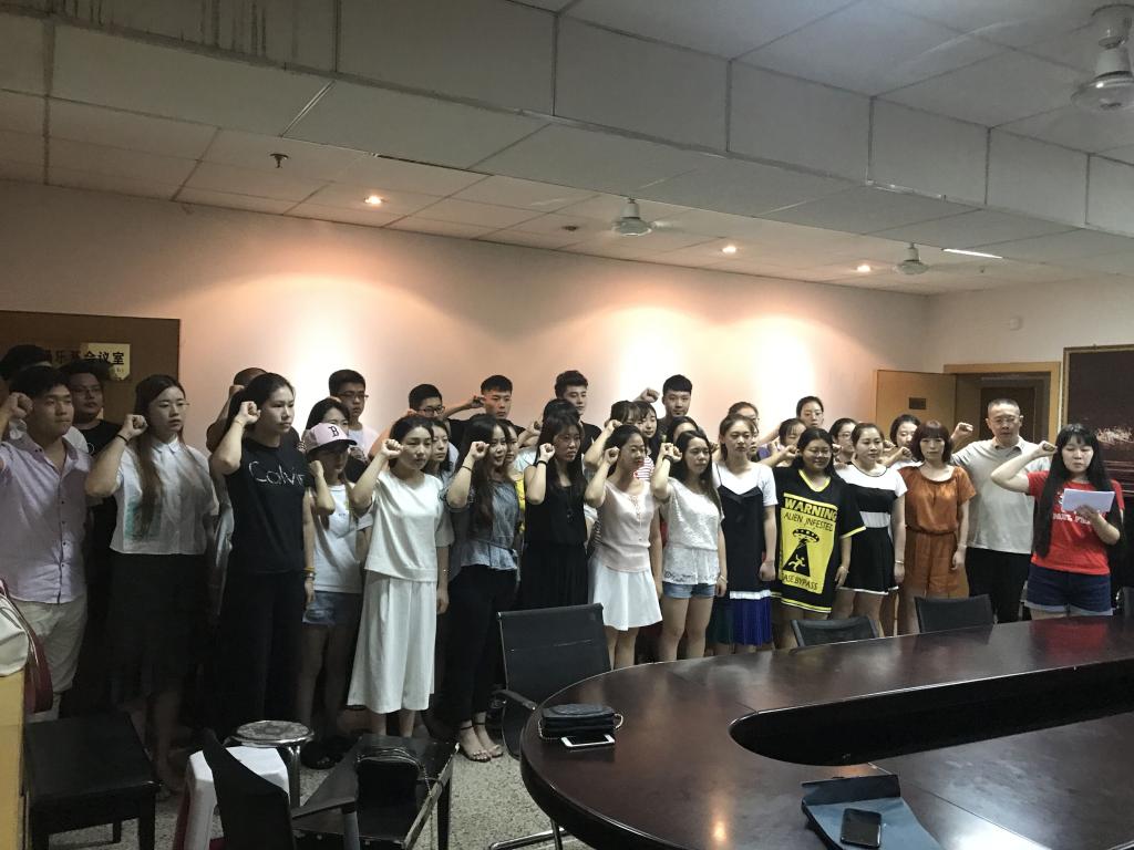 2017年6月20日下午四点半,在五号教学楼十四楼会议室,召开了民乐系毕业生党员重温入党誓词会议,会议由民乐系学生第二党支部书记熊芙萱主持召开,民乐系党总支书记王炜出席此次会议。