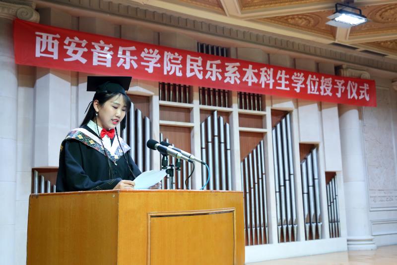 2017年6月22日,在院学术厅,西安音乐学院民乐系2017届毕业典礼暨学位授予仪式隆重举行,民乐系全体教师、部分学生家长出席。典礼由民乐系党总支书记王炜主持。民乐系主任呼延梅文老师为毕业生颁授证书、正冠扶苏,教师代表牛苗苗老师代表民乐系全体教师寄语毕业生,民乐系申毅同学代表全体毕业生发言,民乐系主任呼延梅文讲话。