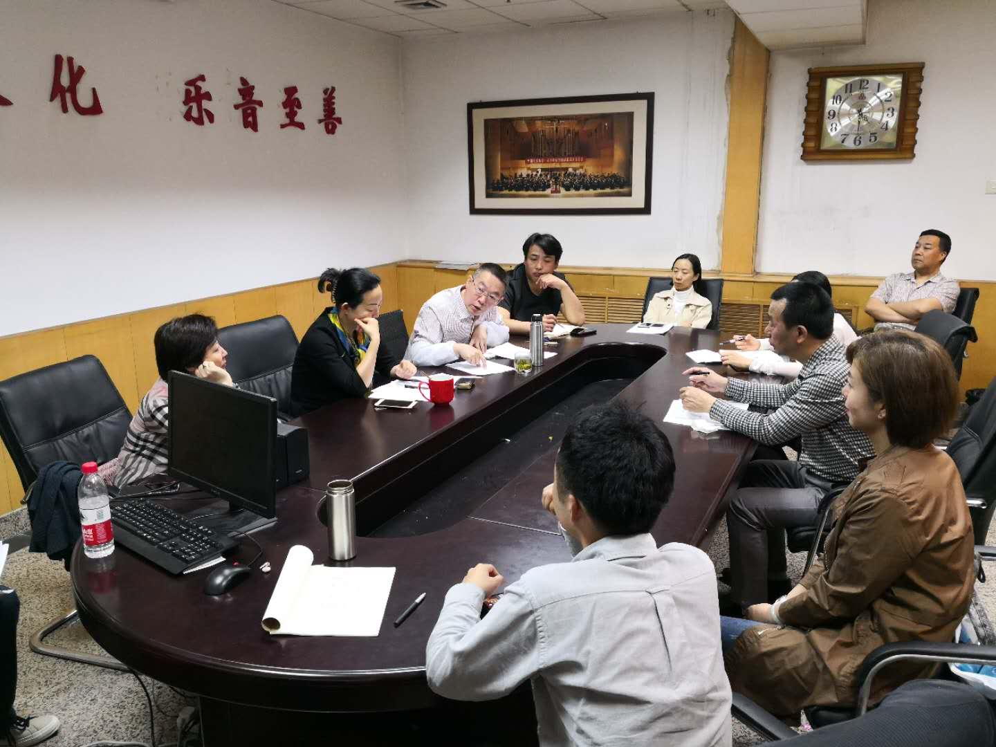 会议最后民乐系系书记王炜及民乐系系主任呼延梅文分别对近期民乐系所做的工作进行梳理,并提出新的工作要求。其中包括:1、继续延续评估期间民乐系良好的工作作风,规范工作程序,严守工作纪律;2、中陕公建项目即将启动,针对我系基本情况有效制定工作要求,合理配备工作资源;3、从系委会成员出发扩展到全系教职工,合理安排工作,将民乐系活动进行整合,因势利导积极推进!