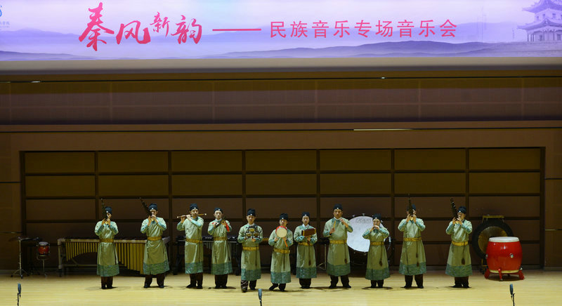 5月31日,“秦风新韵”音乐会在沈阳音乐厅上演。音乐会上,分别为观众展示了秦风特色的小合奏《秦韵》(张晓峰、王方亮曲)、笛子独奏《秦川情》(曾永清编曲)、二胡独奏《兰花花叙事曲》(关铭曲)、平湖派琵琶代表作《郁轮袍》(荇菁、杨少彝传谱 任鸿翔、任畅整理 张昭晗编配)、西域风情的古筝新作《大漠行》(魏军曲,打击乐:孙悦)、排箫独奏《Ave Maria》(Franz Schubert)、扬琴新作《秦殇》(达三江曲)、西安鼓乐《满园春》(行乐;赵庚辰传谱 元修和整理)以及新创作的民族室内乐《碗腔》(张晓峰编曲)。整场音乐会充分展现了我校民乐教学、创作、演奏实践成果,得到了院校同仁们的高度赞誉。