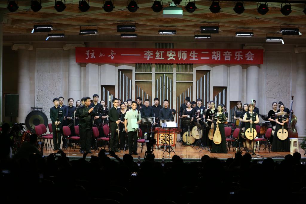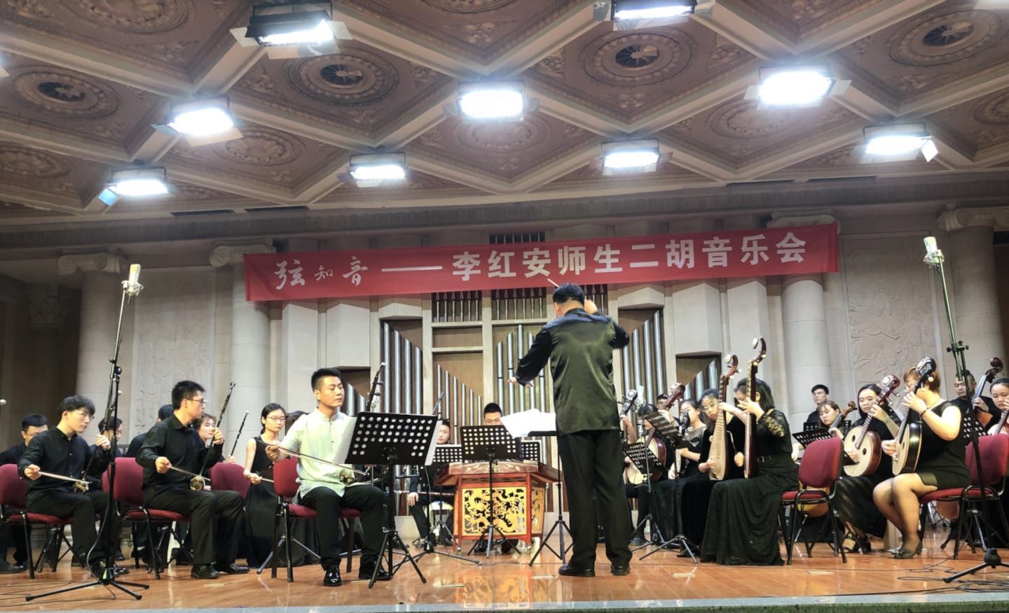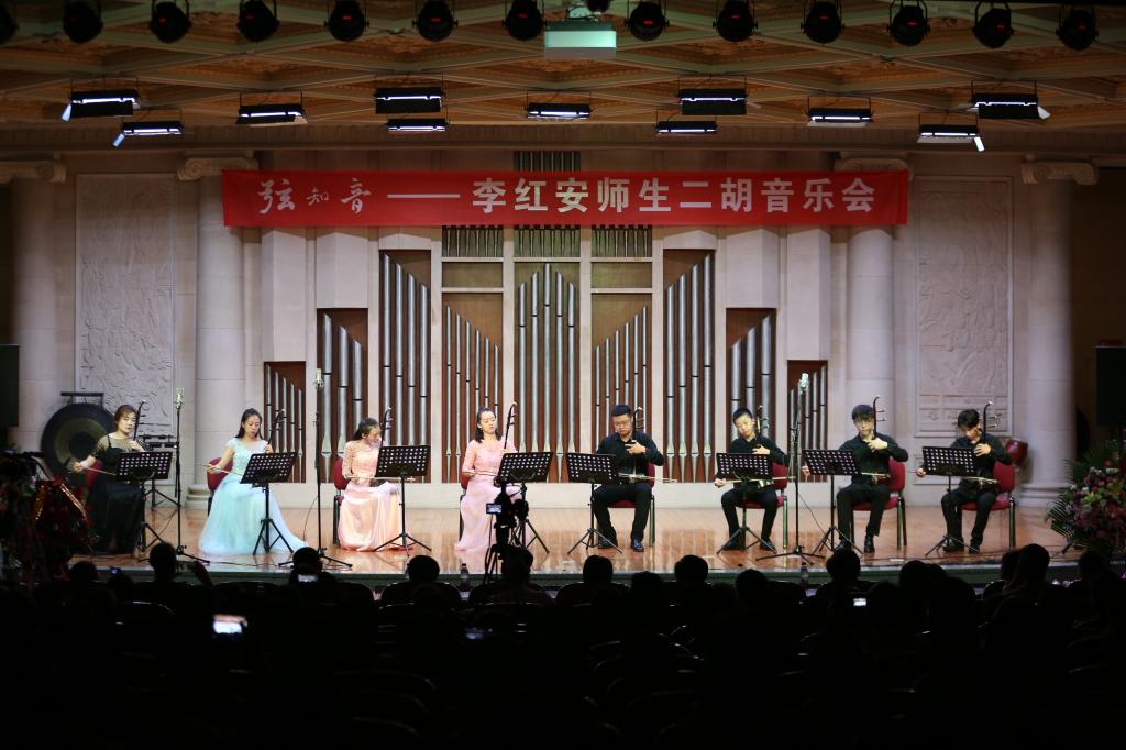 2018年6月16日晚七点半,西安音乐学院学术厅座无虚席,由知名工笔花鸟画家安娜题写的“弦知音”三个字格外有韵。李红安二胡师生音乐会由西安音乐学院指挥家高伟执棒,著名笛子、排萧演奏家高纯华担任导聆。指挥家严松波担任艺术顾问并倾情加盟。音乐会曲目丰富演奏精湛,李红安及他的学生窦晨、李岩、王晓彤、吴林杰、孙哲等演奏了包括独奏、重奏、协奏等乐曲八首,充份展现了李红安十几年的教学、创作与演奏成果!