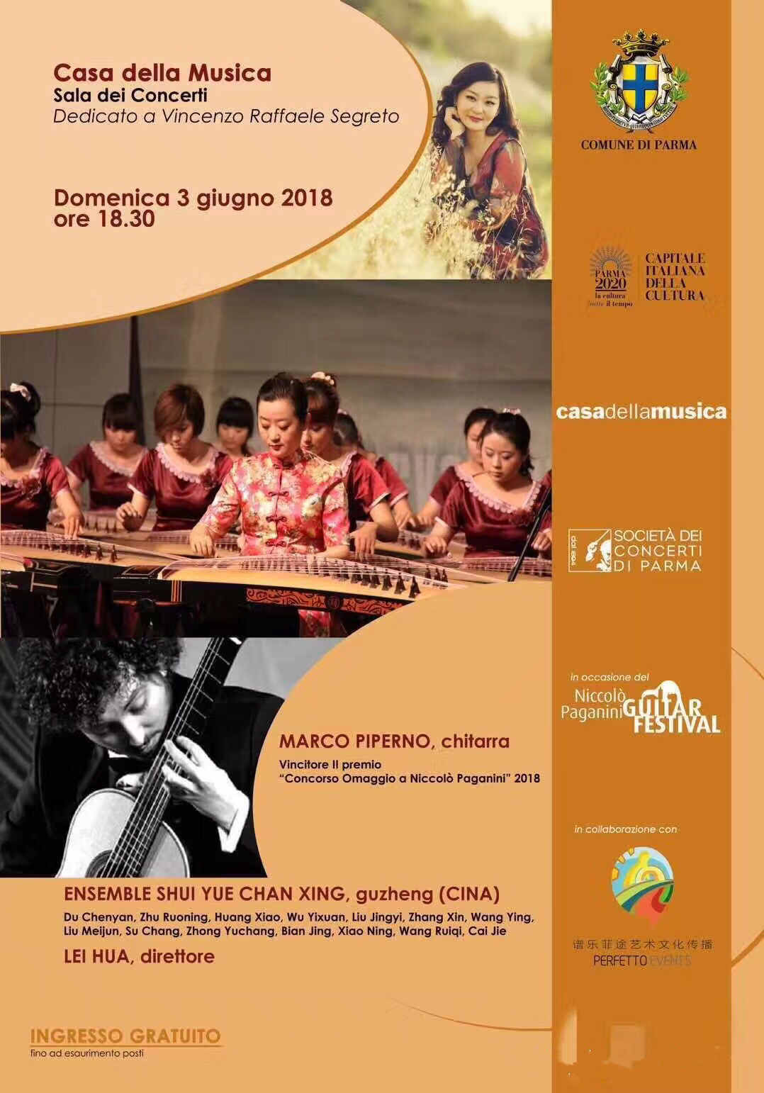 (原文略)此次“水月禅心”古筝乐团在意大利的演出,不仅仅是一次重要的中意文化交流活动,更是一个传播和弘扬中国古典文化以及中国传统音乐的窗口。我们非常荣幸能够在帕尔马邀请到来自西安音乐学院的雷华教授以及青年音乐家团队。我们希望这仅仅是中意文化友好交流的第一步,祝愿更长久的沟通与未来。