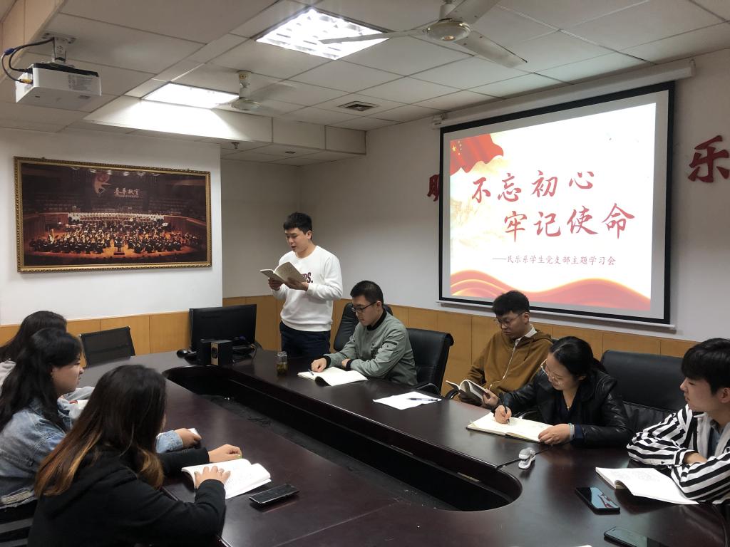 读原著、学原文、悟原理,11月4日民乐系学生党支部为不断加强学生党员的理论知识和服务能力,开展诵读《习近平关于“不忘初心、牢记使命”论述编摘》原文读书分享会。学生们积极分享自身的学习感受,并对学生党员如何践行不忘初心和牢记使命进行了深入的讨论。