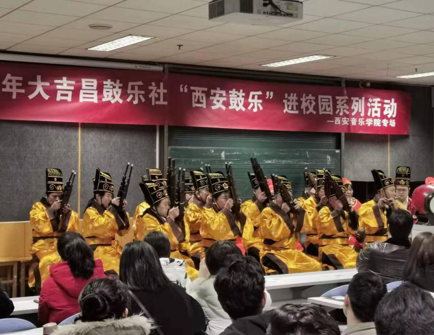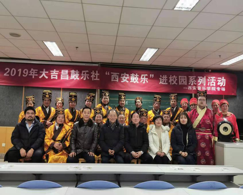 2019年12月24日晚,在西安音乐学院五号教学楼817教室举行了“2019非遗进校园系列活动——西安鼓乐专场音乐会”。出席本次活动的有西安音乐学院特聘教授乔建中先生、西安鼓乐研究会会长程天健教授、民乐系副主任高纯华、吹打乐教研室主任杨会青及张亚楠老师等。