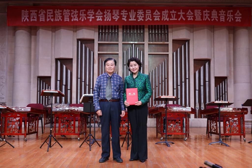 | 陕西省民族管弦乐学会徐光明会长为扬琴专业委员会赵新芝会长颁发聘书 |