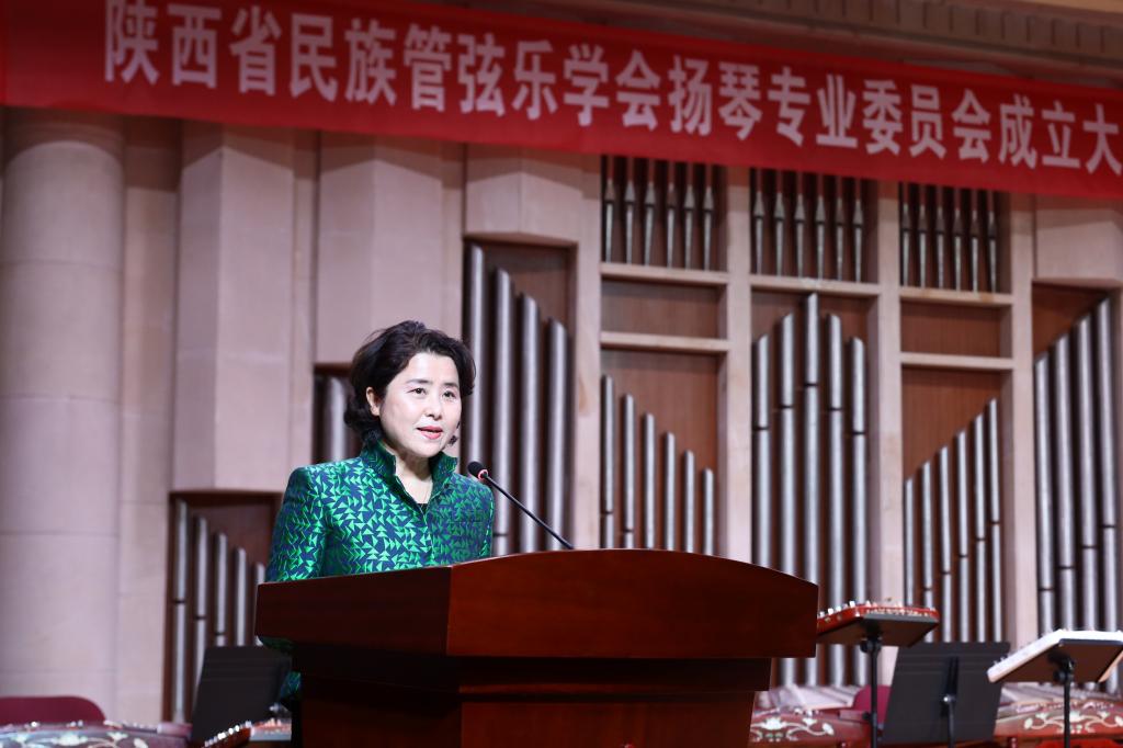 | 陕西省民族管弦乐学会徐光明会长致辞陕西省民族管弦乐学会扬琴专业委员会首任会长赵新芝教授做表态发言 |