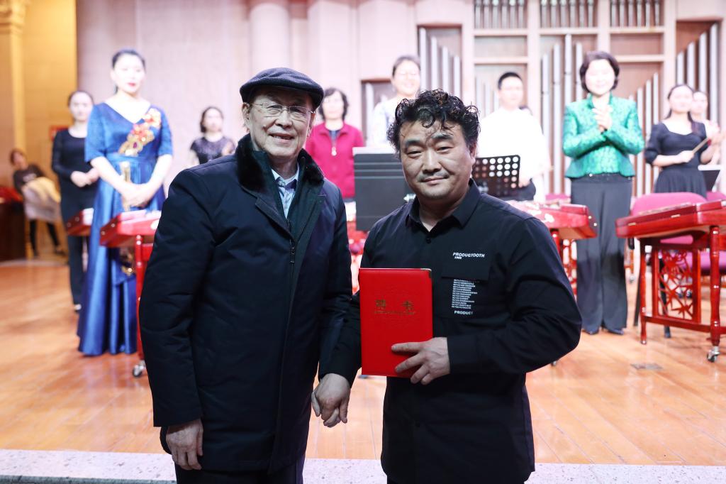 | 陕西省民族管弦乐学会终身荣誉会长鲁日融先生为艺术指导严松波颁发聘书 |